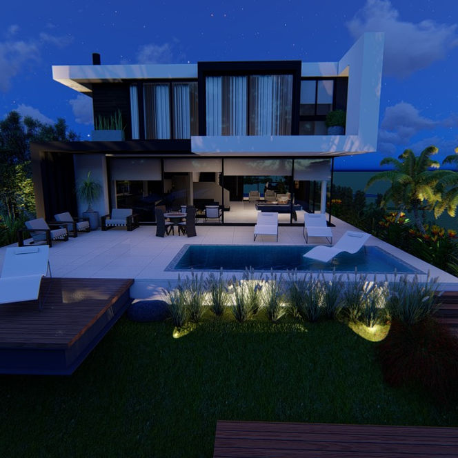 Paisagismo elegante e luxuoso para um residência na praia. Plantas resistentes as condições do local valorizam ainda mais o imóvel.